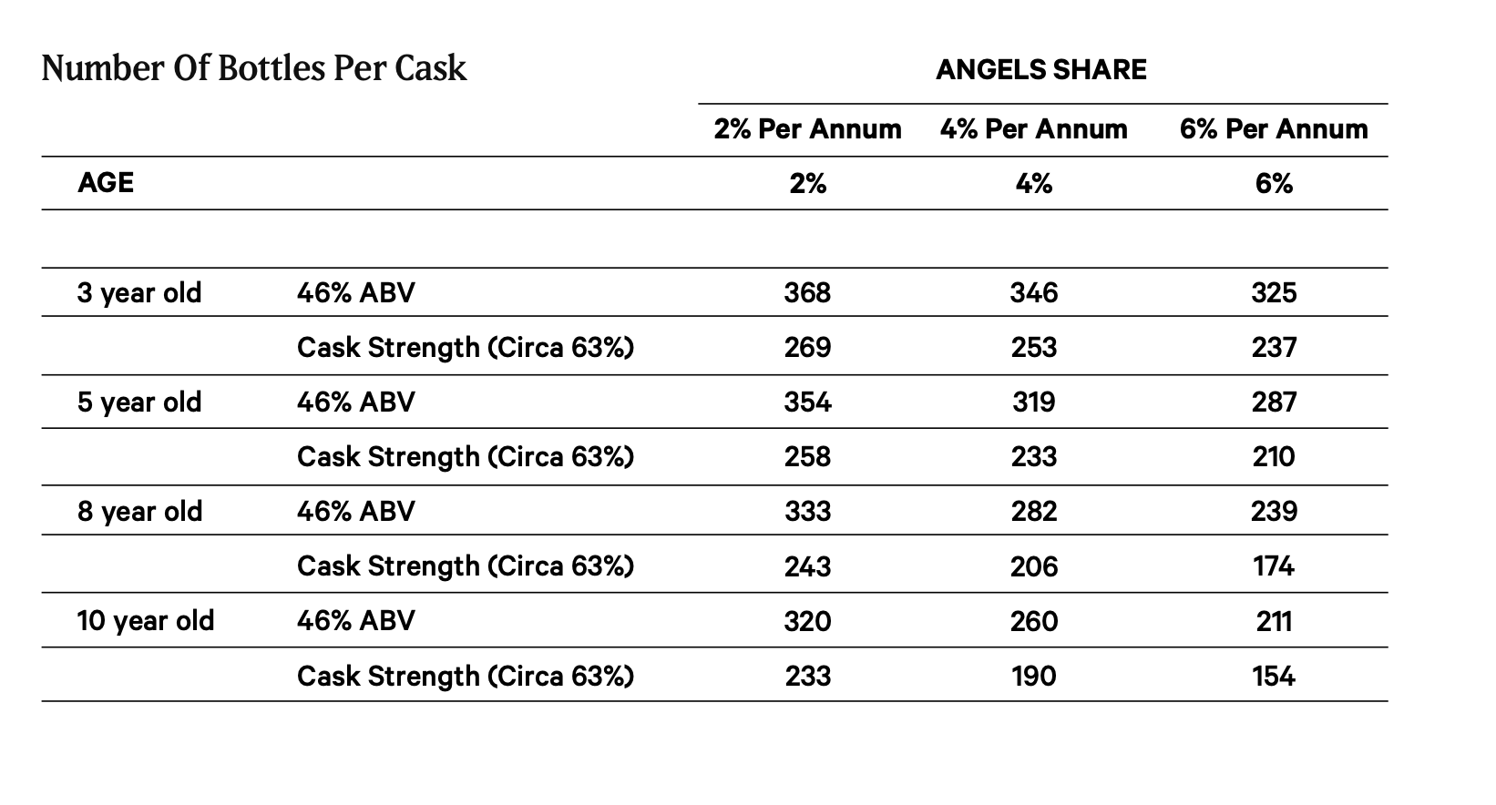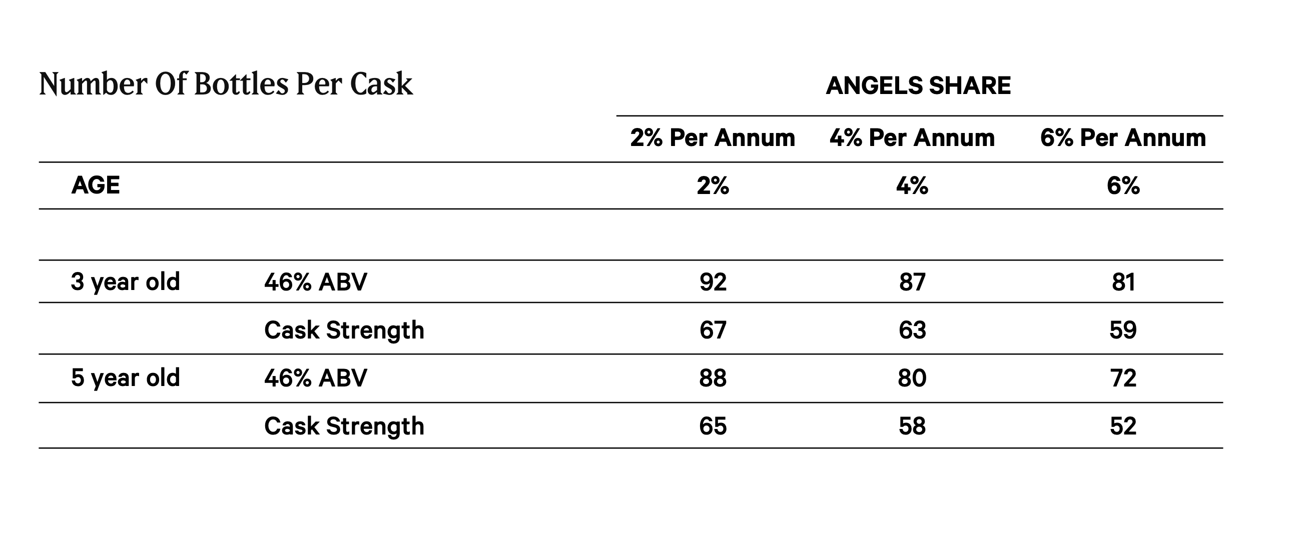 - The owner can choose to bottle their whisky at bottle strength (46%) or cask strength (circa 63%) which then dictates the number of bottles.