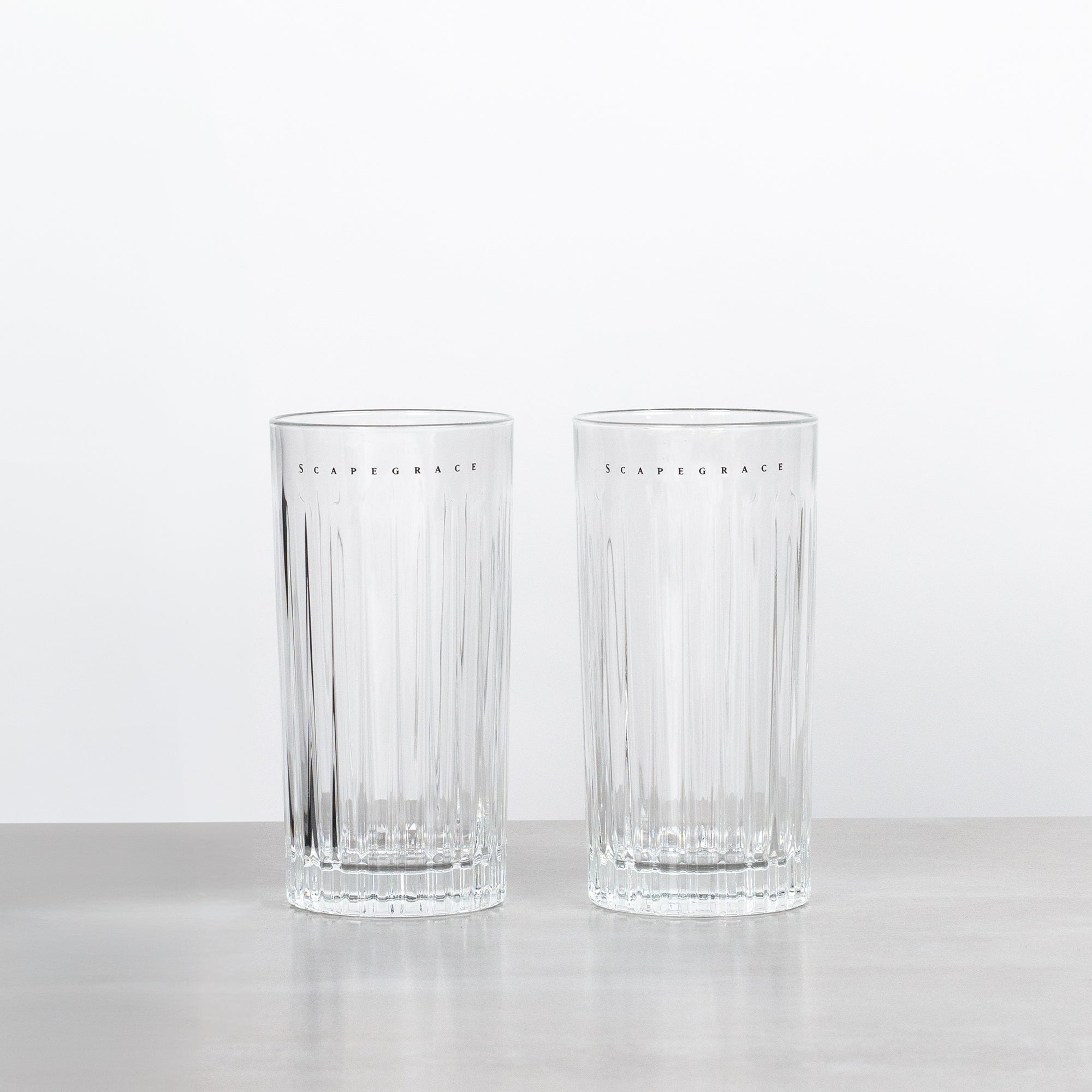 Six Italian crystal-cut glasses, perfect for tall-styled cocktails. Classy, glassy, reliable, and transparent.
